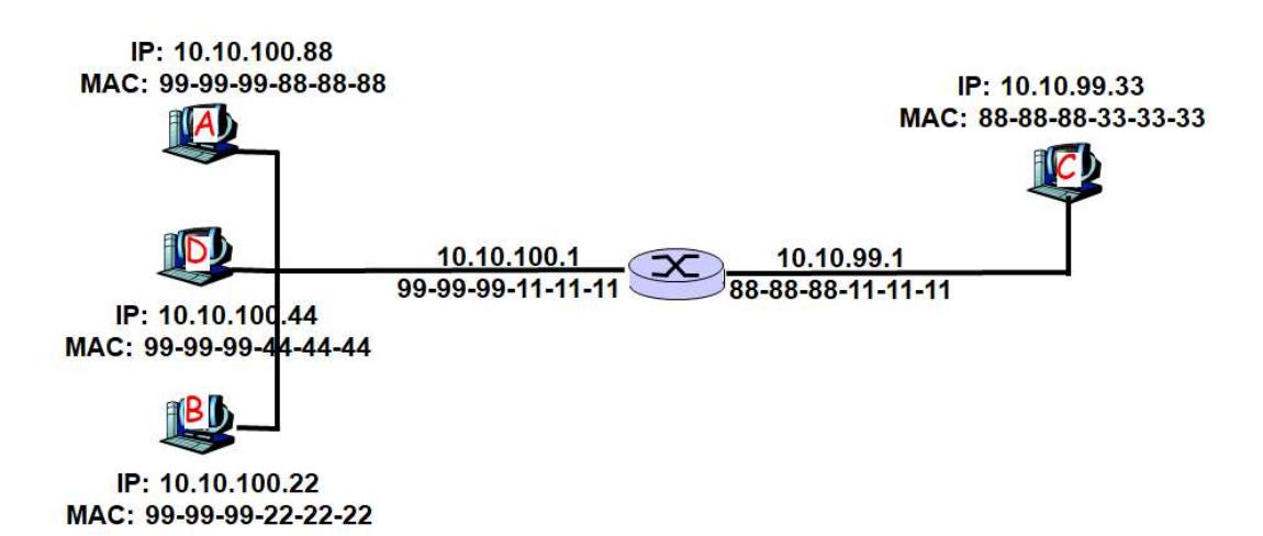 <FF-FF-FF-FF-FF-FF, MAC_C, 0x0806><10.10.99.33, MAC_C, 10.10.100.22, 0-0-0-0-0-0>Router replies: