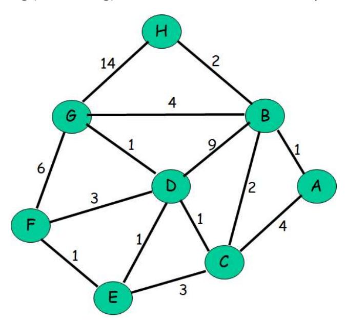 Consider the following network: With the indicated link costs, use Dijkstra’s shortest path algorithm to compute the shortest path from A to all network nodes. After computing the shortest paths from A to all other nodes, show the routing (forwarding) table constructed at A. Show your work clearly.