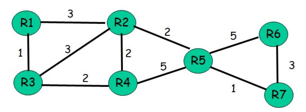 - (a) Assume router R1 is the source and reverse-path forwarding is used. Compute the resulting source-based multicast tree rooted at R1.