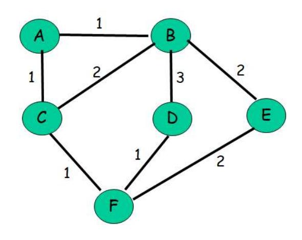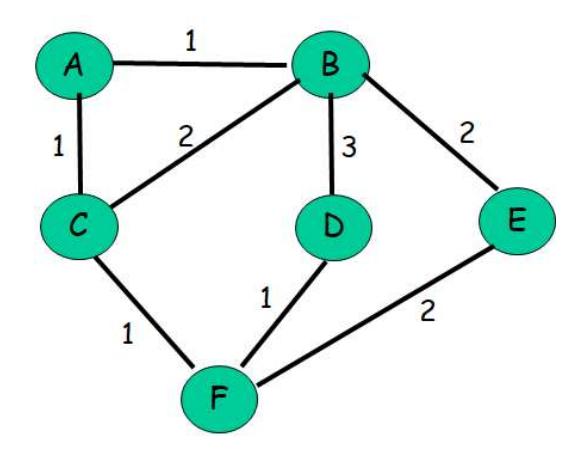Consider the following network: With the indicated link costs, use Dijkstra’s shortest path algorithm to compute the shortest path from F to all network nodes. After computing the shortest paths from F to all other nodes, show the routing (forwarding) table constructed at F. Show your work clearly.
