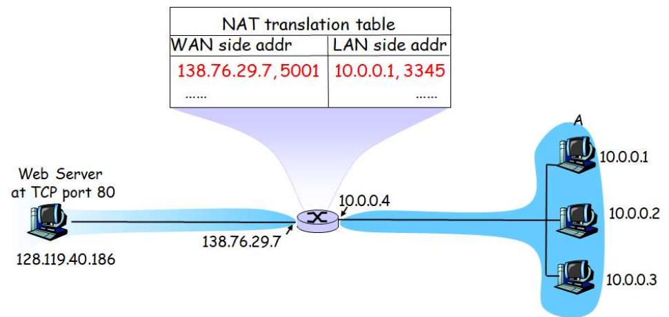 | From router to A | 128.119.40.186 | 80 | 10.0.0.1 | 3345 |